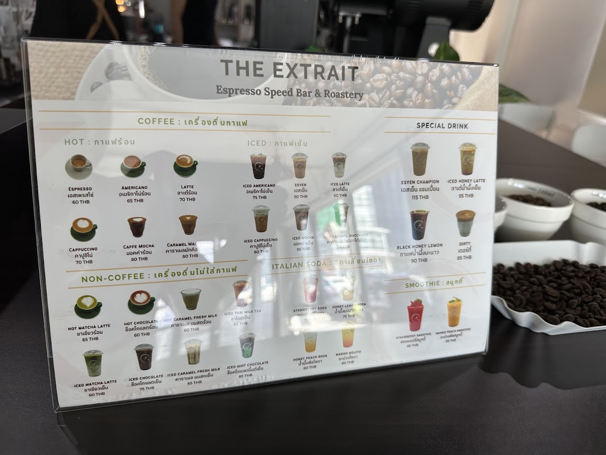 The menu at The Extrait Coffee Roaster focuses primarily on specialty coffee drinks prepared from beans roasted in-house. Visitors can expect a selection of brewed coffee options, including popular choices such as Americano, made from carefully sourced and freshly roasted coffee beans.